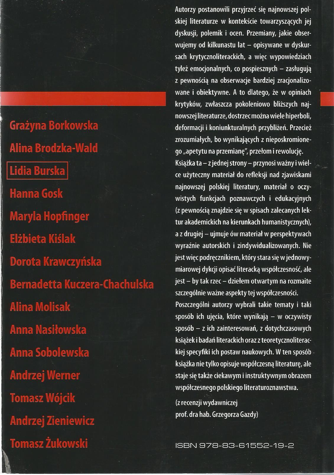 5. Obraz literatury w komunikacji społecznej po roku ’89, pod redakcją Andrzeja Wernera i Tomasza Żukowskiego, Wydawnictwo IBL PAN, Warszawa 2013, s. 483.